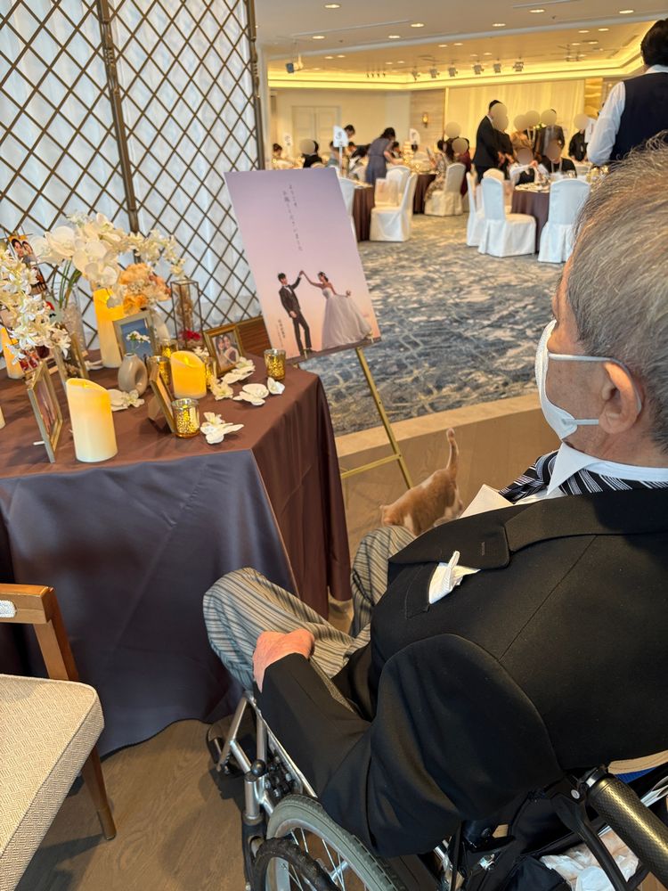 披露宴のお食事の際はサポート不要ということでしたのでご家族様でのお時間を楽しんでいただき、介護士はお困りごとがないか定期的にお声がけをさせていただきました。新郎様のお兄様方にも温かく接していただき、お父様のご様子についてご相談しながら、サポートをさせていただくことができました。