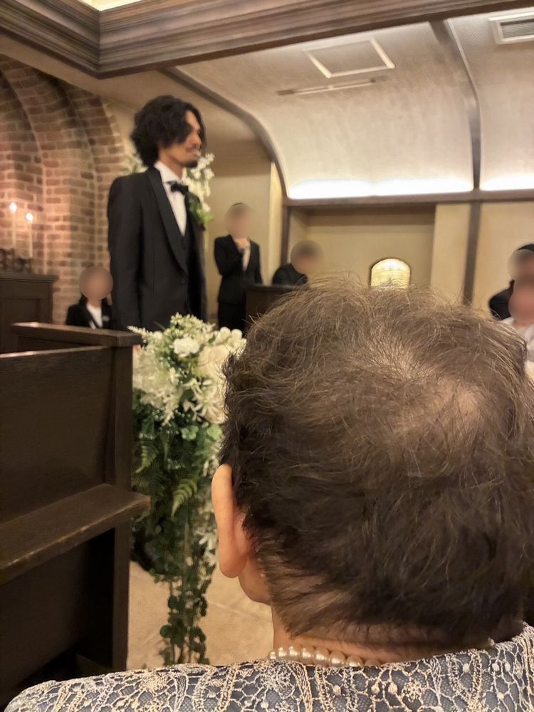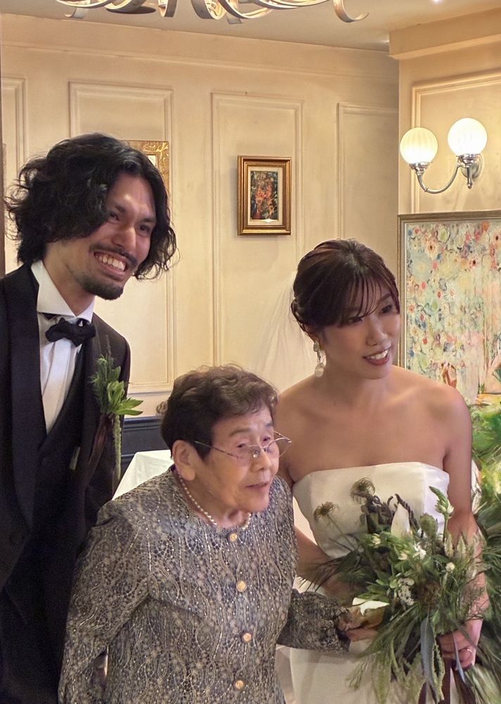 お祖母様は、行きのタクシー内で何度も新郎様のお名前を口にされ、お式を大変楽しみにされていたことが伺えました。式場ではご親族の方々との歓談など、リラックスしたご様子で過ごされており、新郎様の晴れ姿には力強い拍手で祝福されていました。
